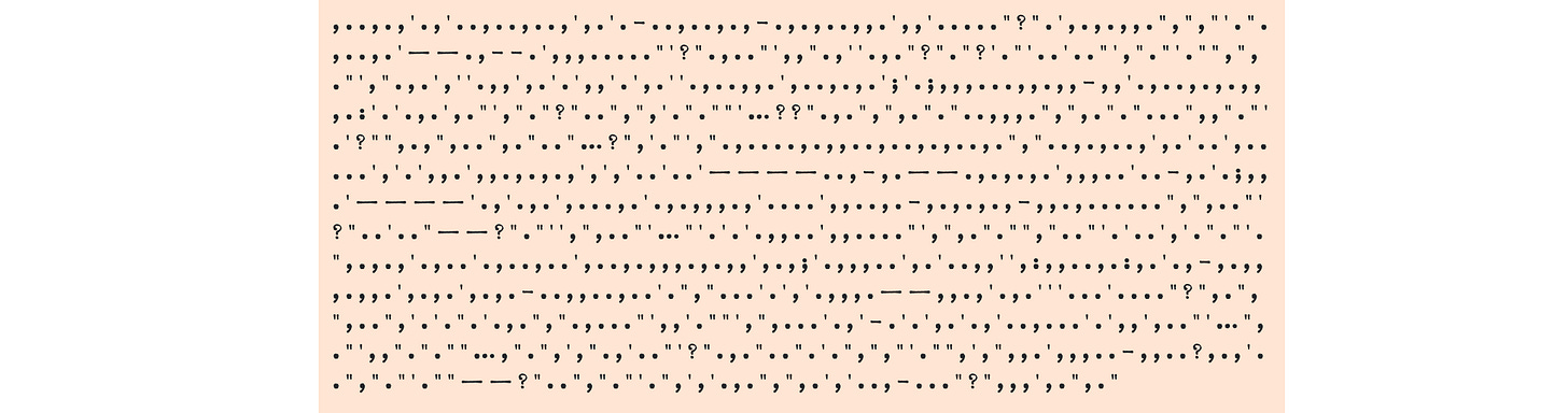 What I Learned About My Writing by Seeing Only the Punctuation {Medium} by Clive Thompson includes a neat (free!) web tool that can strip your writing down to just its punctuation. What does your punctation say about your style?